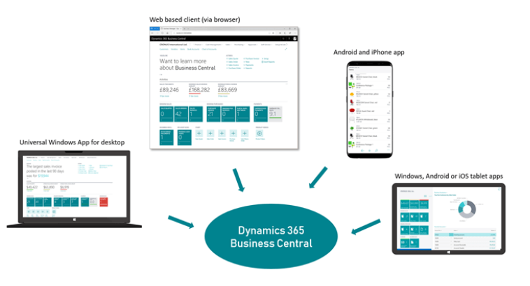Durch den webbasierenden Client der aktuellen Version von Business Central kann browserbasierend von den unterschiedlichsten beim Kunden verwendeten Eingabegeräten auf die Lösung zugegriffen werden. Es werden die unterschiedlichsten Browser (Microsoft Edge, Internet Explorer 11, Google Chrome, Mozilla Firefox, Safari) und Betriebssysteme unterstützt (Windows, IOS, Android).